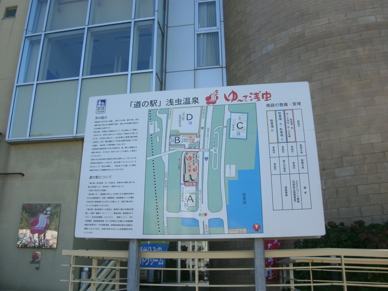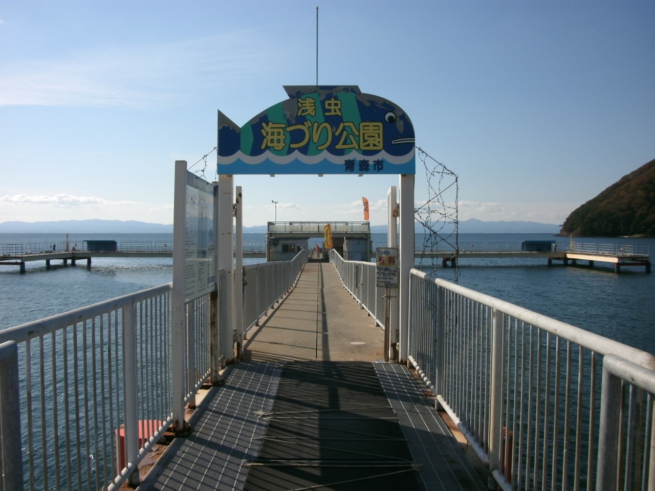 青い森鉄道の浅虫温泉駅を越えるような形で架けられている人道橋(ゆうやけ橋)を渡ってすぐのところにあります。公園と言っても、植栽や芝生などはなく釣りを目的にしたものです。釣らなくても入場料が必要なので入りませんでしたが、浅虫温泉のシンボルである湯の島は目の前に見えるし、周辺を散策するのにはいいところです。無料の駐車場があります。