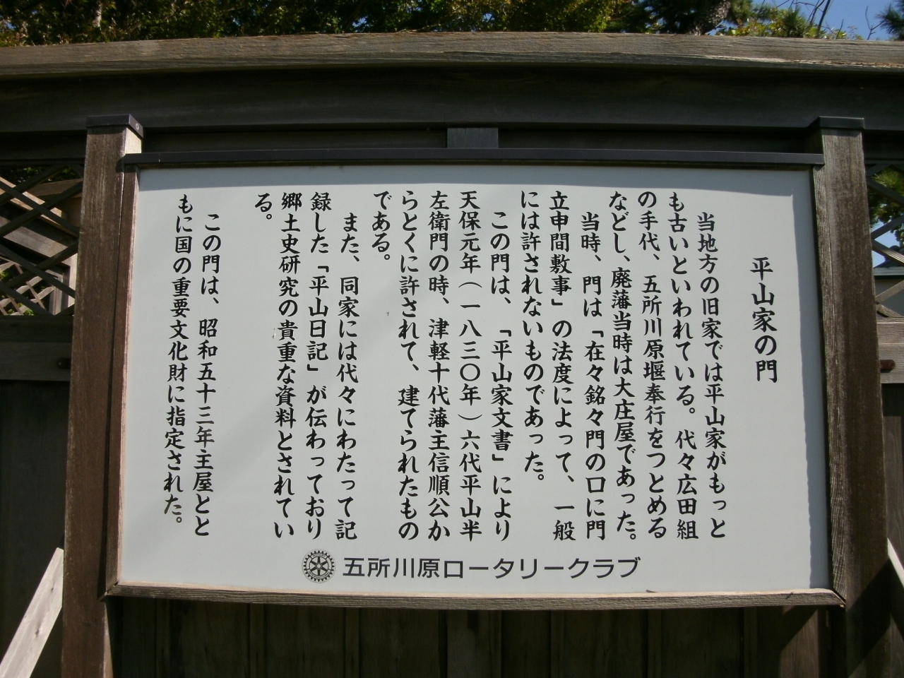 五所川原堰奉行を務め、大庄屋でもあった平山家の住宅です。豪農の家ですが、津軽藩に対する貢献が大きかったということで、長屋門形式の表門があります。