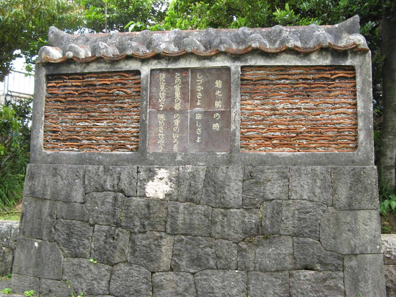 歌碑の裏には、『佐藤惣之助は神奈川県川崎市の出身の詩人で、琉球諸島を旅して琉球諸島風物詩集を著すなど、この地に愛情を注いだ人で、沖縄に親愛の情を寄せる川崎市民が惣之助の記念と沖縄と川崎とを結ぶ友情の絆として歌碑を贈ったもので、同じ川崎市の出身の浜田庄司氏が陶板を作成した。』と言う意味のことが記載されています。