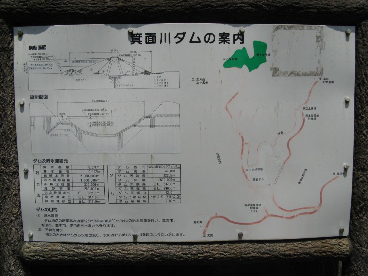 このダム付近一帯は、明治の森箕面国定公園に指定されているからでしょうか、ダムの周りには、公園や広場などはなく積極的にダムを開放して見せようとはしてないように思いました。