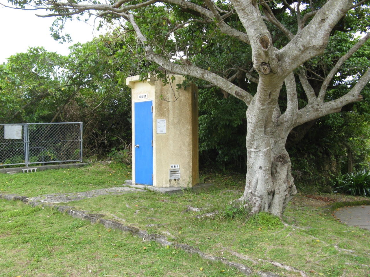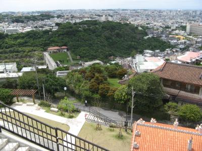公園の西側の登り口には、小さな子供向けの遊具広場があり、坂道を登っていくと山頂部は広く、休憩所のほかにトイレや水飲み場も整備されていて、小さな拝所のようなものがあります。山頂部からは、首里城や遠く那覇港の方まで見渡すことができます。