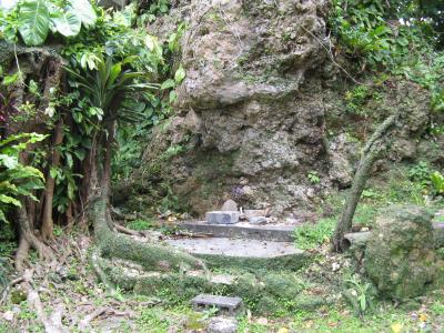 沖縄では、岩盤の奥の水脈から樋(とい)で水を引いてきたものを、「樋川(ヒージャー)」といいます。昔は、水が豊富に流れ近隣の酒製作所の源となっていたそうですが、岩盤の奥を覗いて見ると水は少し溜まっているが、樋からは水は流れ出ていませんでした。この場所は、小高い丘になっているのに水が湧き出ていることが不思議に思いました。