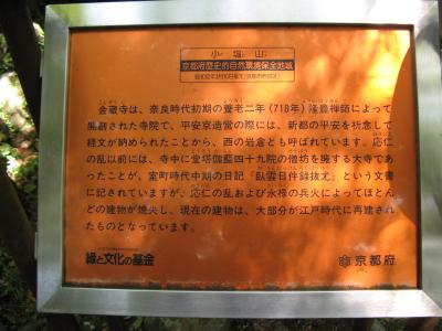 現地にある説明板によると、応仁の乱により建物は焼失したそうで、現在の建物は大部分が江戸時代に再建されたものとか。山の中腹にある分、境内からの京都方面の眺めはたいへんよかったです。参道や境内にはモミジの木が多く、紅葉時期は大変綺麗だろうと思いました。- 旅行時期