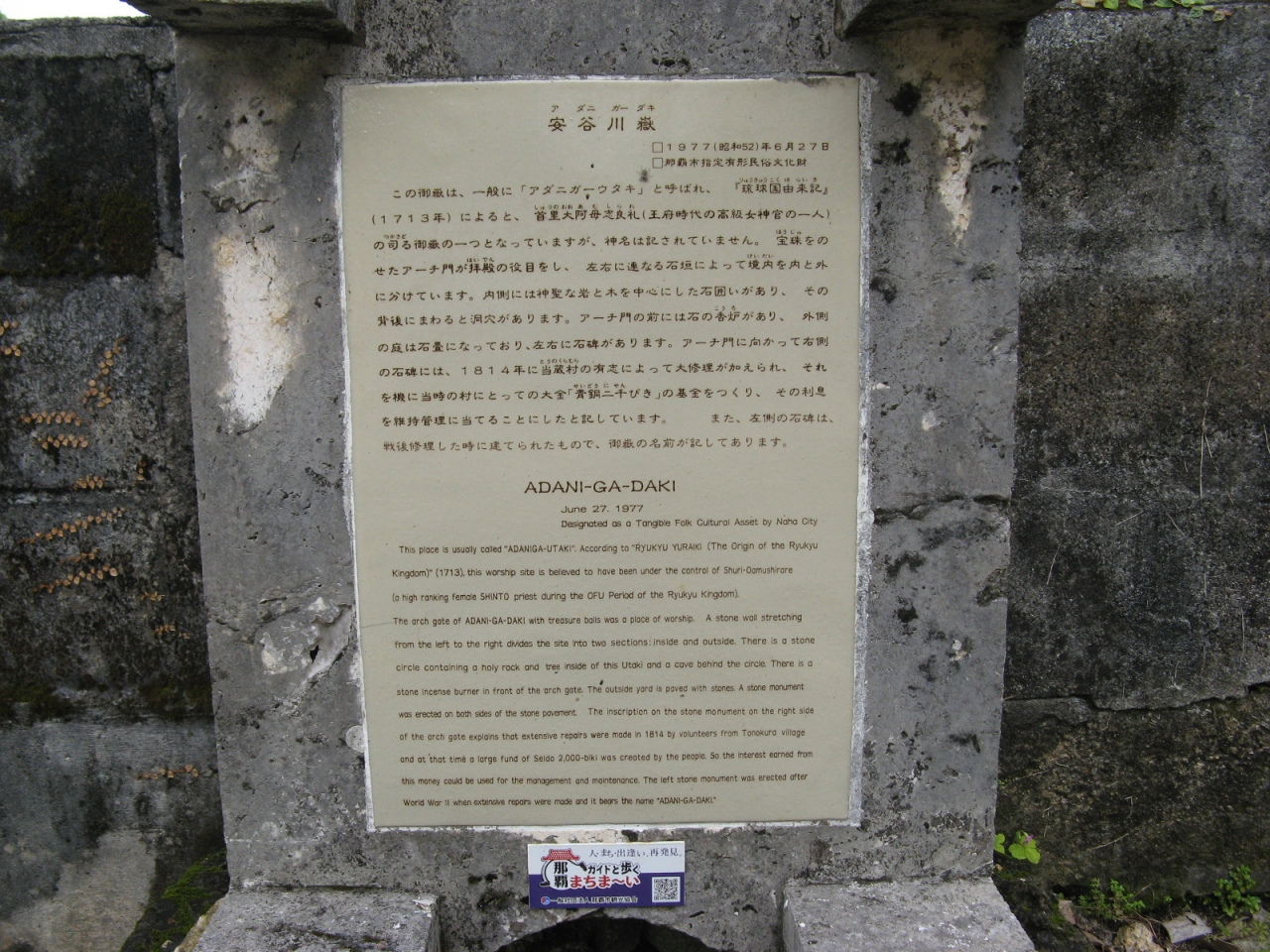 「安谷井御嶽」は、1977年に那覇市指定有形民族文化財に指定されています。