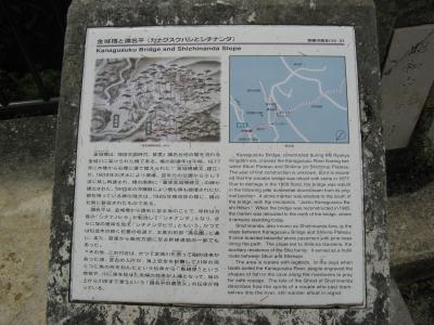 王府時代は南に抜ける主要な街道(真珠道)であった識名坂を金城橋から見ると、道は、狭くてかなりの急坂です。周辺は住宅地となっていて昔の街道の趣はありませんが、石碑の説明板を見て、琉球王国時代に思いをはせることができました。- 旅行時期