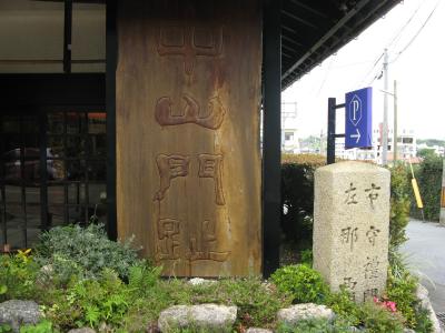 世界遺産のひとつ、“玉陵”のすぐ近く、寒川通り(県道50号線)に面する“琉染”と言う染物屋さんの入り口に「中山門跡」の石標が建っています。
