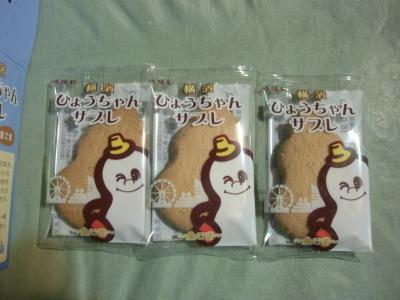 シュウマイ弁当を買いに寄ったのですが、“ひょうちゃんサブレ 560円”と言うお菓子が目についたので購入しました。崎陽軒公式キャラクター、しょう油入れの「ひょうちゃん」をかたどったサブレで、サクッとしていて口どけが良くゴマ風味で美味しかったです。10枚入って560円と、お手軽だし、個包装になっているのでお土産としても良いと思います。