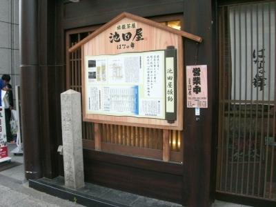 中京区木屋町通三条下る二筋目、高瀬川にかかる山崎橋西詰に「彦根藩邸跡」の石碑が立っています。江戸時代後期、彦根藩の京都における連絡事務所であったところで、藩邸の北側、南側ともに高瀬川の舟入(物の積み下ろしと舟の方向転換の場所)があったことから、水運の便の良いところに藩邸を設けたのでしょうか。現在は、石碑があるだけですが、この辺りは、土佐藩邸や加賀藩邸などの石碑もあって、坂本竜馬が暗殺された近江屋も近いので、幕末や歴史好きの方にはオススメの場所です。
