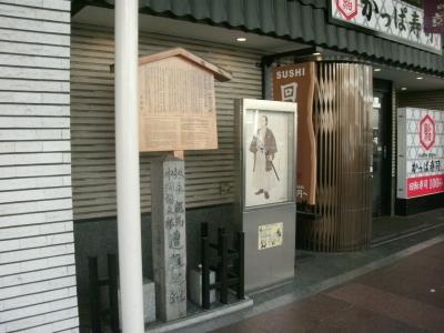 阪急電車の四条河原町駅から河原町通りを北に3分ほど歩いた、通りの西側に「坂本龍馬中岡慎太郎遭難之地」の石碑があります。坂本龍馬と中岡慎太郎の両者が暗殺された近江屋があったところです。石碑と説明板があるだけで、当時の様子をうかがわせるものは何も残っていなくて残念ですが、龍馬ファンなら必ず訪れたいところです。周辺には、池田屋跡や土佐藩邸跡、お龍寓居跡、岬神社(土佐稲荷)など竜馬にかかわる史跡がたくさんあるので、合わせて観て回ればよいでしょう。すぐ近くに、京都交通観光案内所があります。