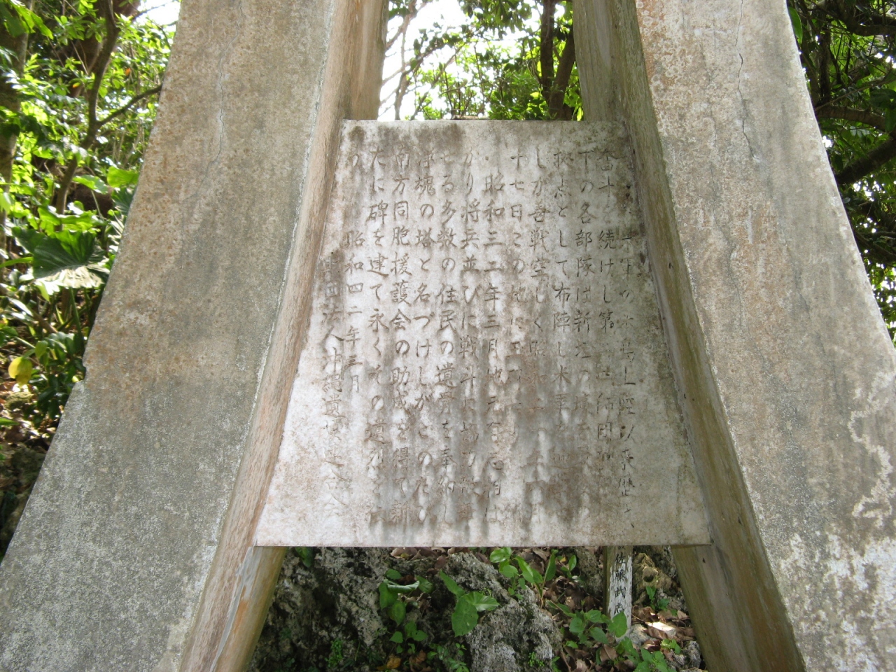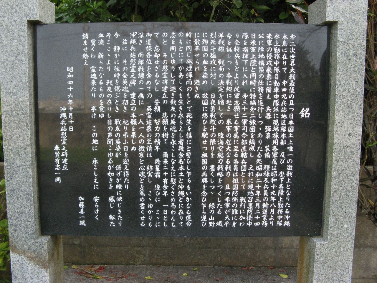 昭和32年3月、新垣部落の有志が、この地で戦い戦死された将兵並びに戦闘に協力した住民の遺骨約1万柱を納めて建立されたものを昭和42年3月、南方同胞援護会の助成によって改修したものだそうです。