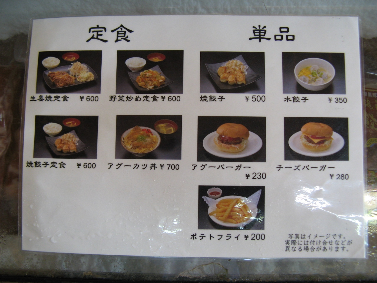 メニューは、“アグーそば”や“アグーカツ定食”、“アグーカツカレー”、“アグーチーズバーガー”、“アグーかつ丼”、“餃子”などアグー豚専門店らいしラインナップ。