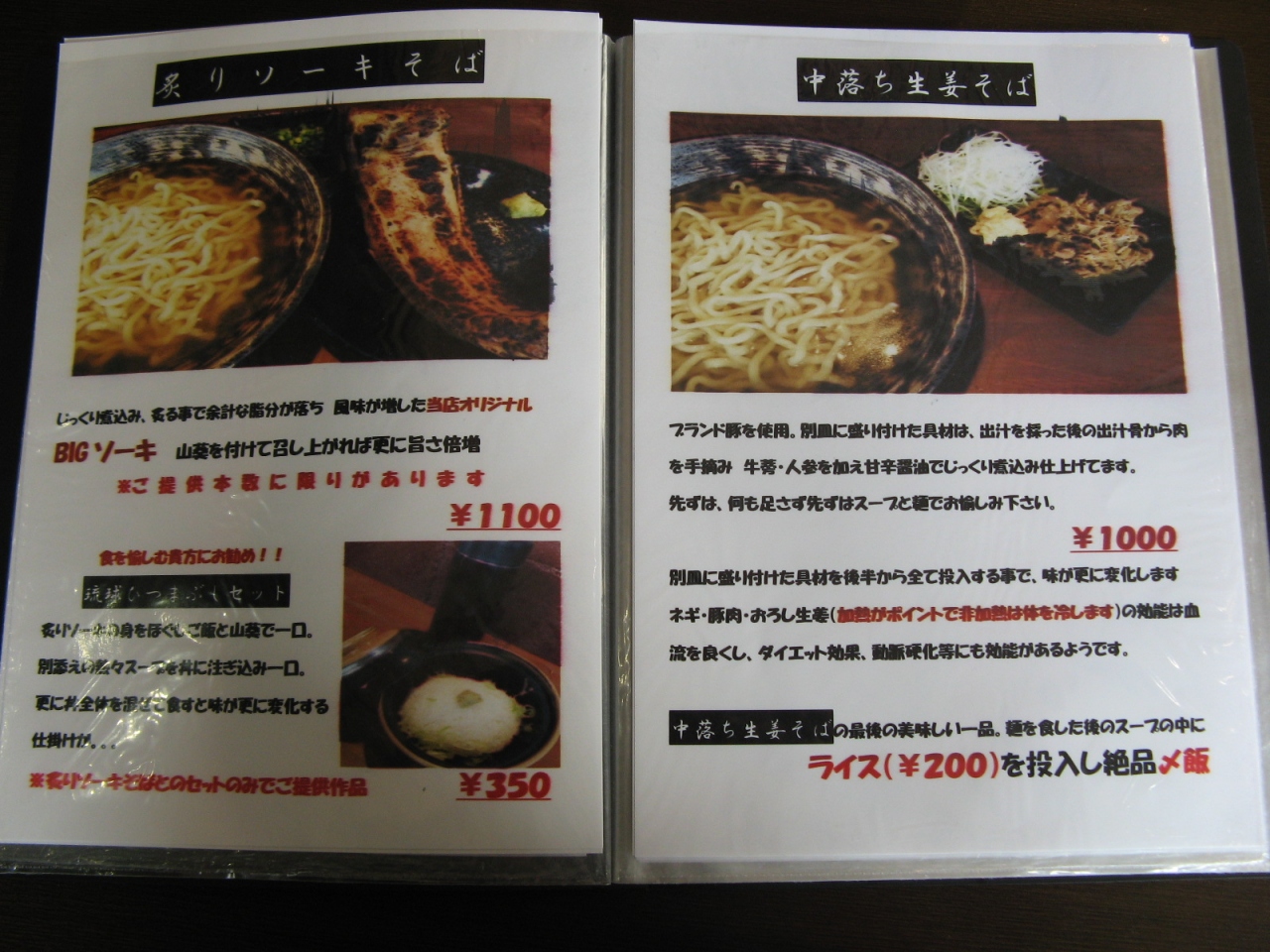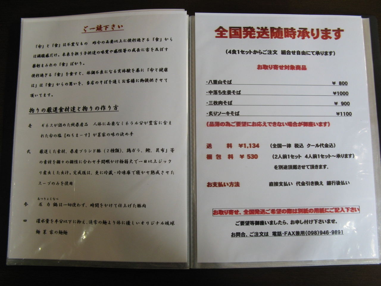 メニューの冒頭には、お客さんに“食”を十分愉しんで頂きたいということから、麺は生麺、具材は別皿で提供するという方式で、メニューを“作品”と表現するなど御主人の麺に対するこだわりが表記されています。