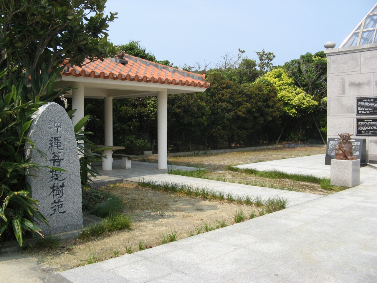 国道331号線のひめゆりの塔から300mほど東に進み、県道223号線に入って1?ほど行くと米須霊域があります。その米須霊域への入り口道路沿いに「沖縄菩提樹苑」があります。