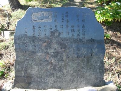 深浦町の森山海岸の小さな岬に「森山城跡 (茶右衛門館) 」があります。JR十二湖駅から車で2~3分国道101号線を北に走り、国道からそれて五能線を超えてしばらく走ると岬の根元に「町指定史跡森山城跡」の説明版があります。説明版には、『松前藩の歴史書「新羅之記録」によれば、ここを本拠地としていた森山飛騨守季定は、安東氏宗家に叛いたため、天文15年(1546)に桧山の安東尋季と舜季の父子、松前の蠣崎季広に滅ぼされたと言われています。その後、津軽為信の家臣である小野茶右衛門の居城となったことから、茶右衛門館とも呼ばれています。その小野茶右衛門も、二代藩主信牧の時に、大間越の笹森勘解由左衛門らにより滅ぼされたと伝えられています。』と記載されています。