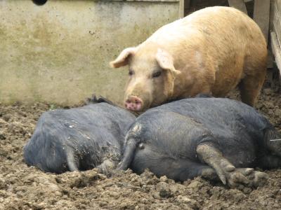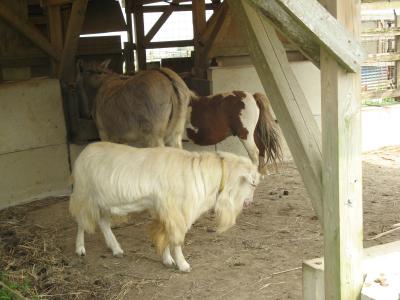 帰りに、お店の方に声をかけて、敷地内で飼育されているアグー豚やポニー、ヤギ、アヒルを見学させてもらいました。