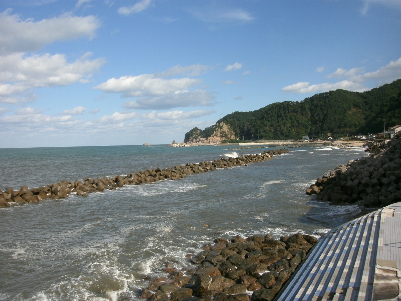 新潟県から海岸線沿いに山形県に入ってすぐにある道の駅です。舟形のユニークな物産館の館内には温海の海産物や農産物、加工品が並んでいます。