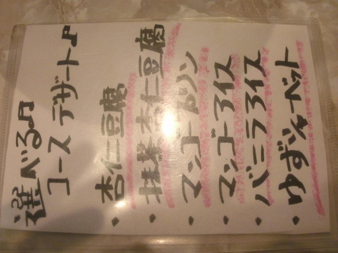 “美食人コース”はボリュームがあるし、コストパフォーマンスが良く、二人から予約なしで頂けるので都合が良いです。ただ、以前は2~3種類のコース中から選べたのに、一種類しかなかったのがちょっと不満でした。- 旅行時期