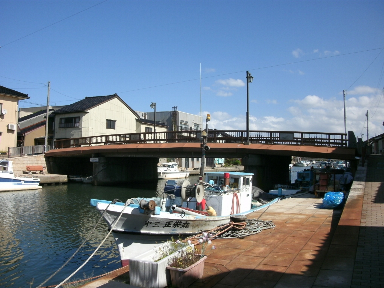 北陸自動車道の小杉ICからR472号を北へ約20分、新湊の富山新港に流れ込む内川に架かる橋です。