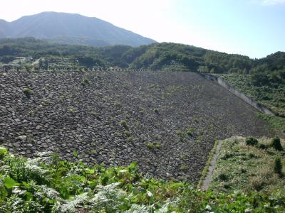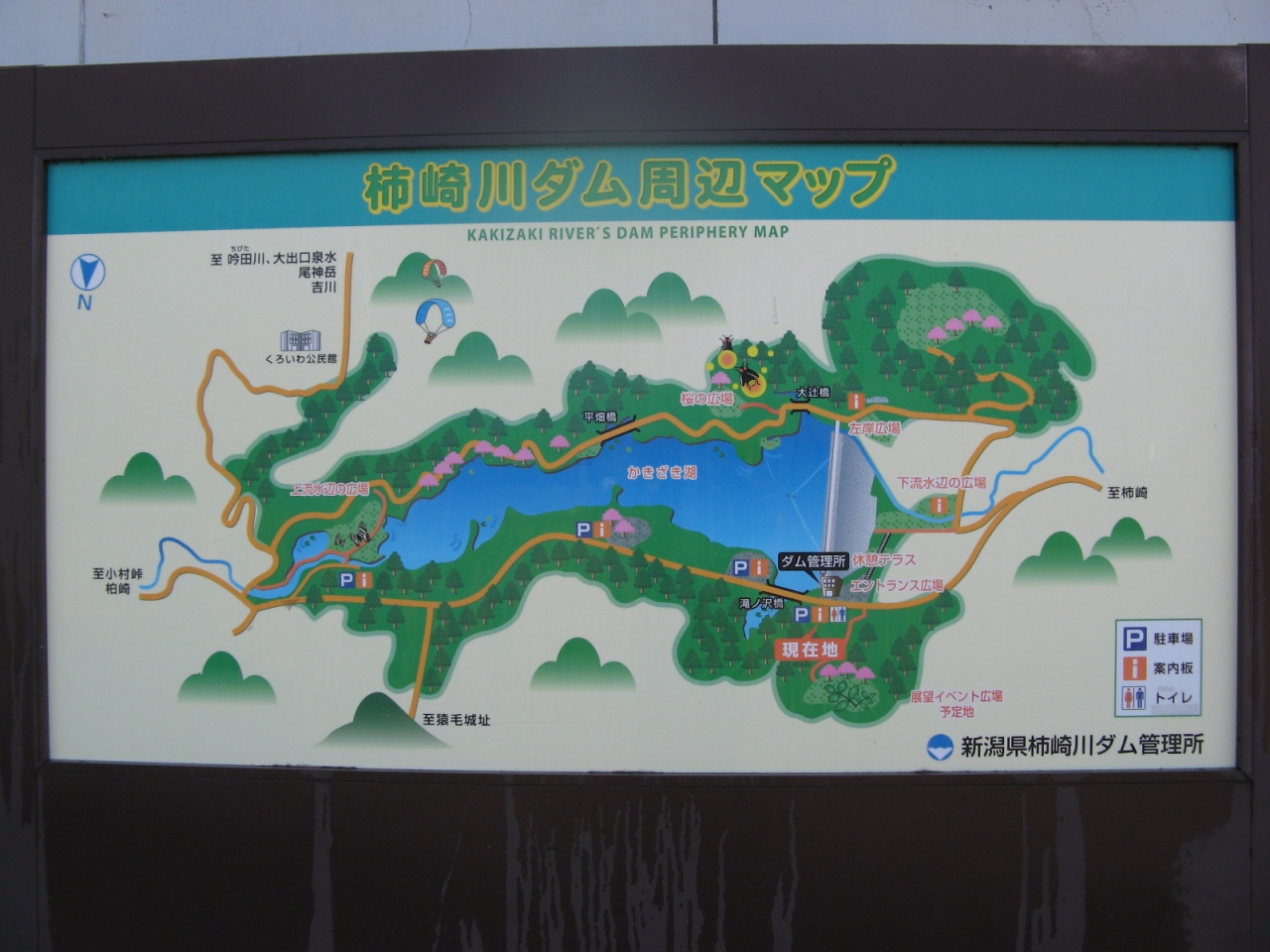 北陸自動車道・柿崎インターチェンジを出て30分ほど、県道25号線を柿崎川上流に向かって進んで行くと、平坦な田園地帯を過ぎるとまもなく巨大な柿崎川ダムのロックフィルの堤体が見えてきます。