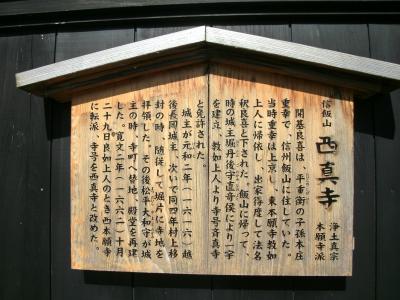 JR村上駅から歩いて15分ほどのところにあります。お寺の入口横の塀に掲げてある由緒書きによると、開基は元和四年(1618年)、三百七十年の歴史を持つというお寺さんで境内には、皇太子妃雅子様のご先祖のお墓があります。由緒の詳細は写真をアップしますので参照ください。