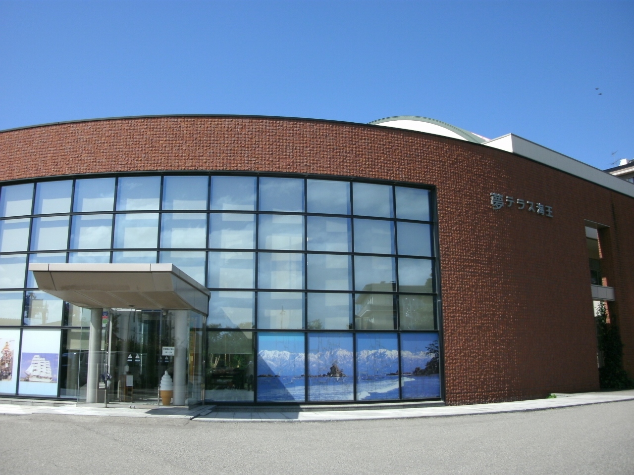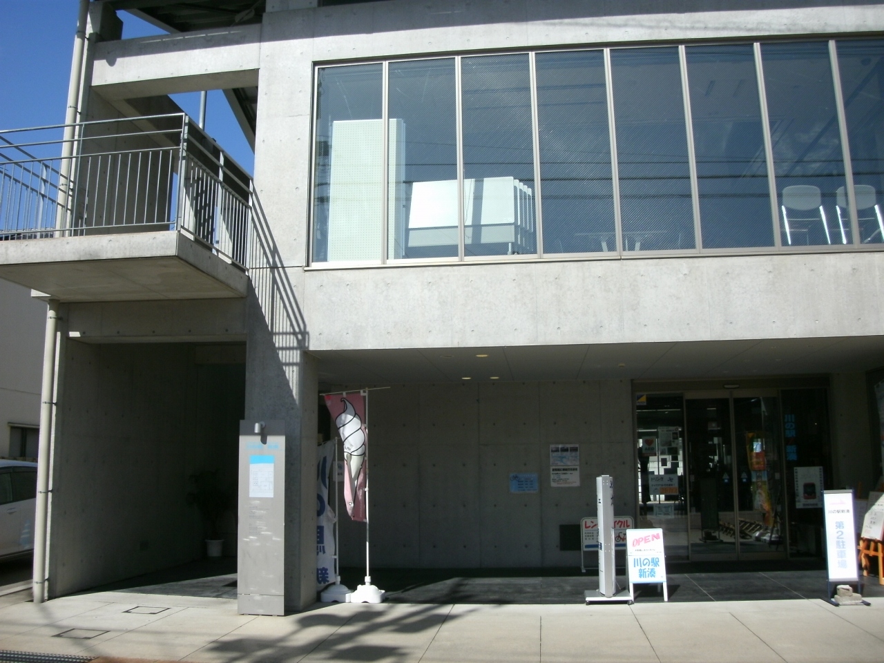新湊の富山新港に流れ込む内川沿いにあります。1階にはお土産の販売コーナーや観光案内コーナー、レンタサイクルなどがあって、2階はカフェになっています。