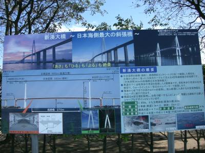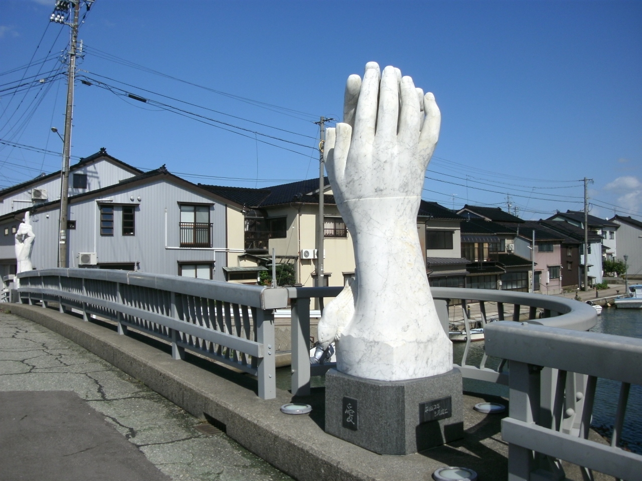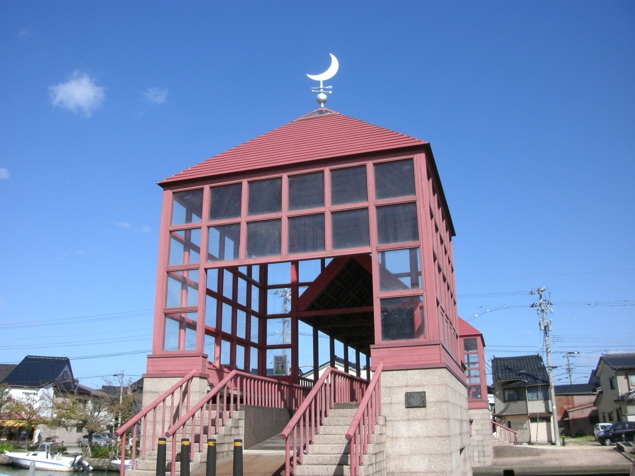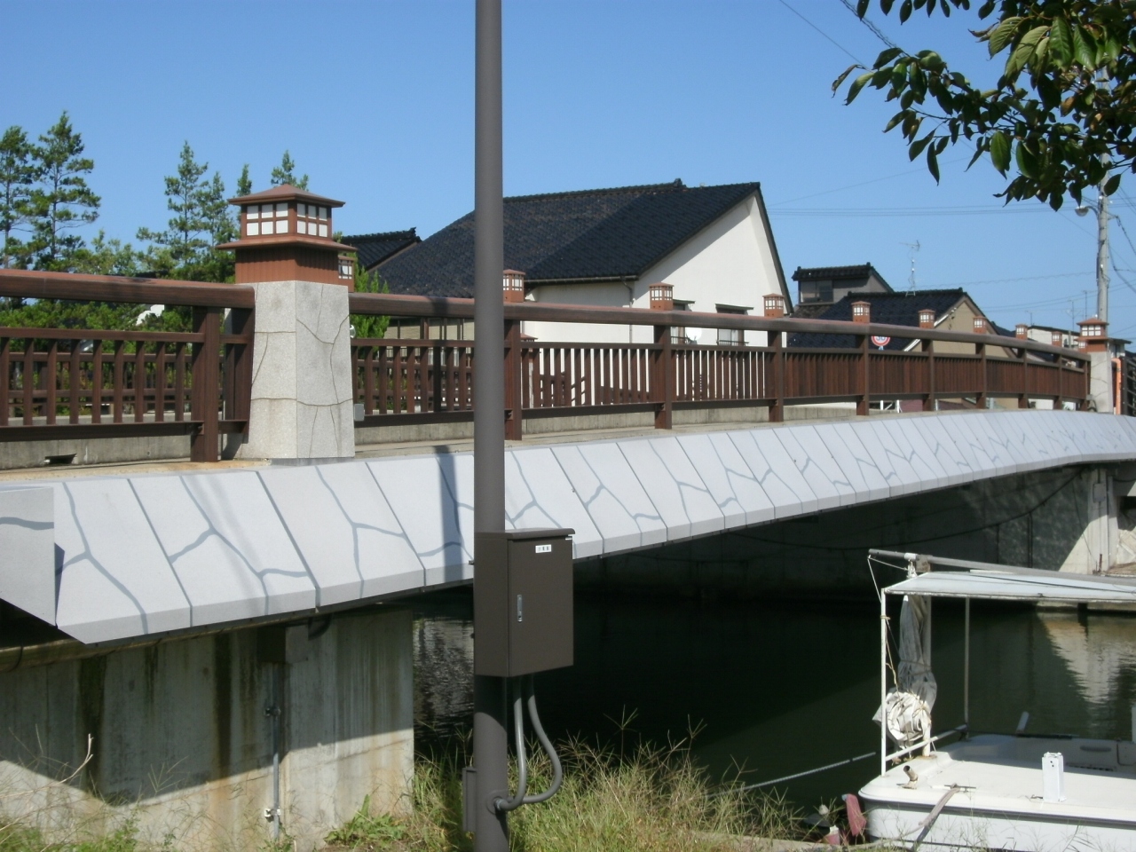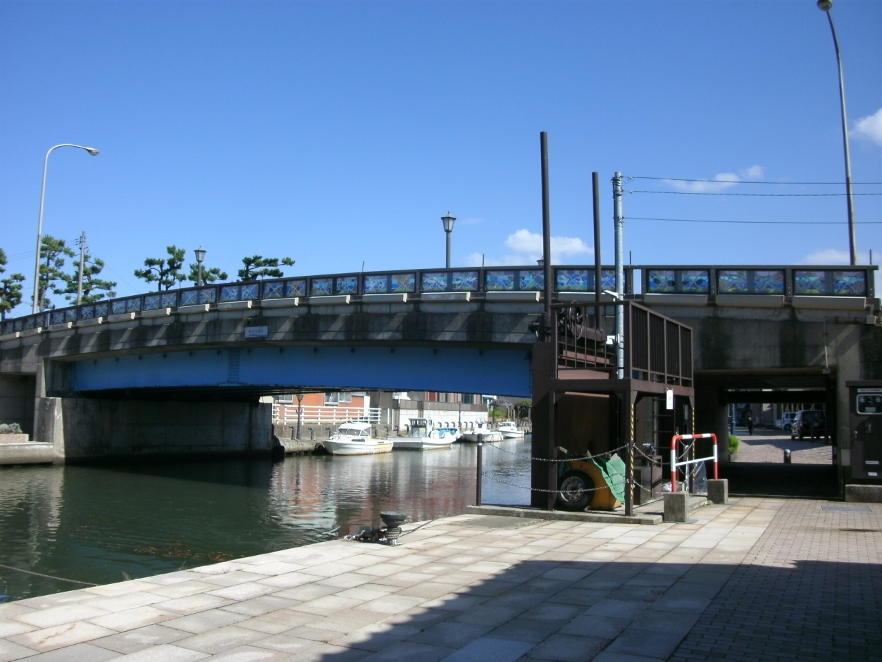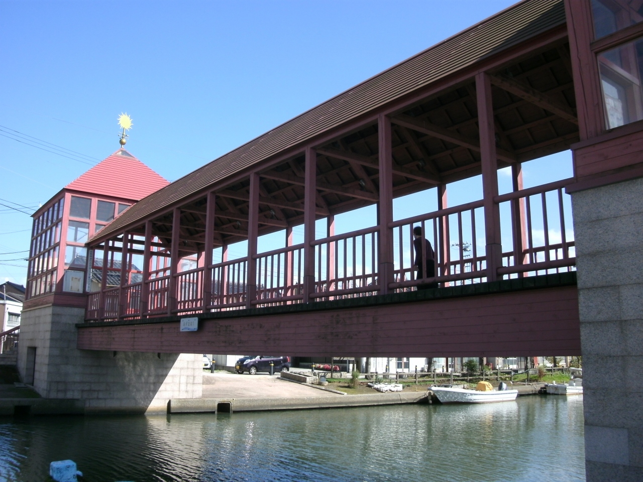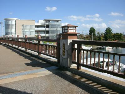 内川沿いには、この橋をはじめとして特徴的な形の橋が多く、射水市観光協会で頂いた“水辺の回廊&橋マップ”をもとに14か所の橋を回ってみましたが、ノンビリと水郷や運河の散策を楽むのにとても良いところでした。内川沿いの“川の駅新湊”の観光案内所でもマップは手に入るので参考にされるとよいでしょう。- 旅行時期