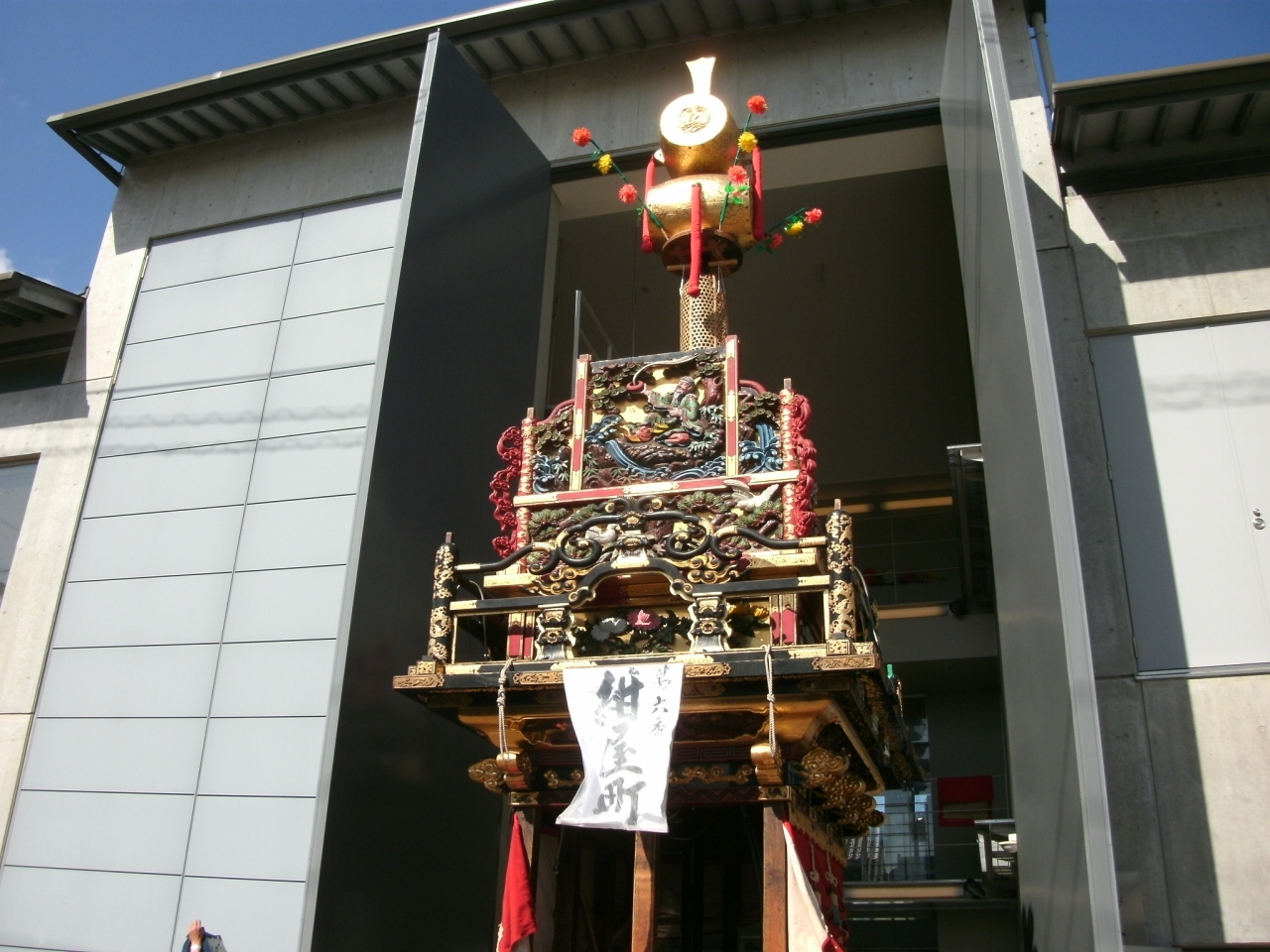 新湊曳山まつりで使われる曳山2基が常設展示されていて、訪れたのが10月はじめだったこともあって、曳山を出している作業を見ることが出来ました。
