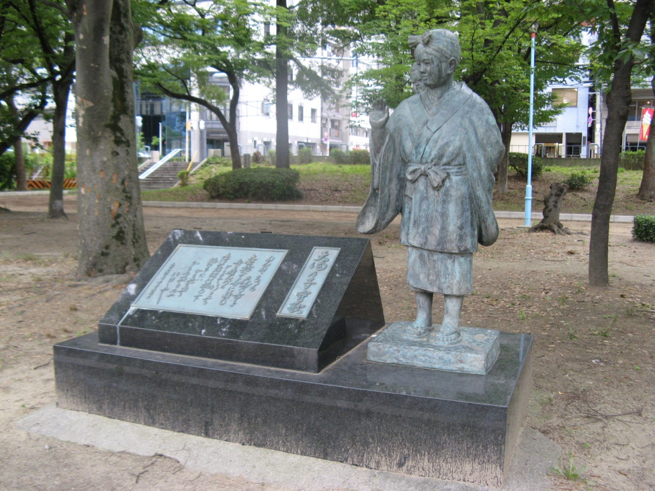 江戸時代から昭和初期まで栄えた天満の青物市付近で歌われていた子守歌だそうで、女の子がねんねこ姿で幼子を背負い、あやしている可愛らしい像と歌詞が刻まれています。