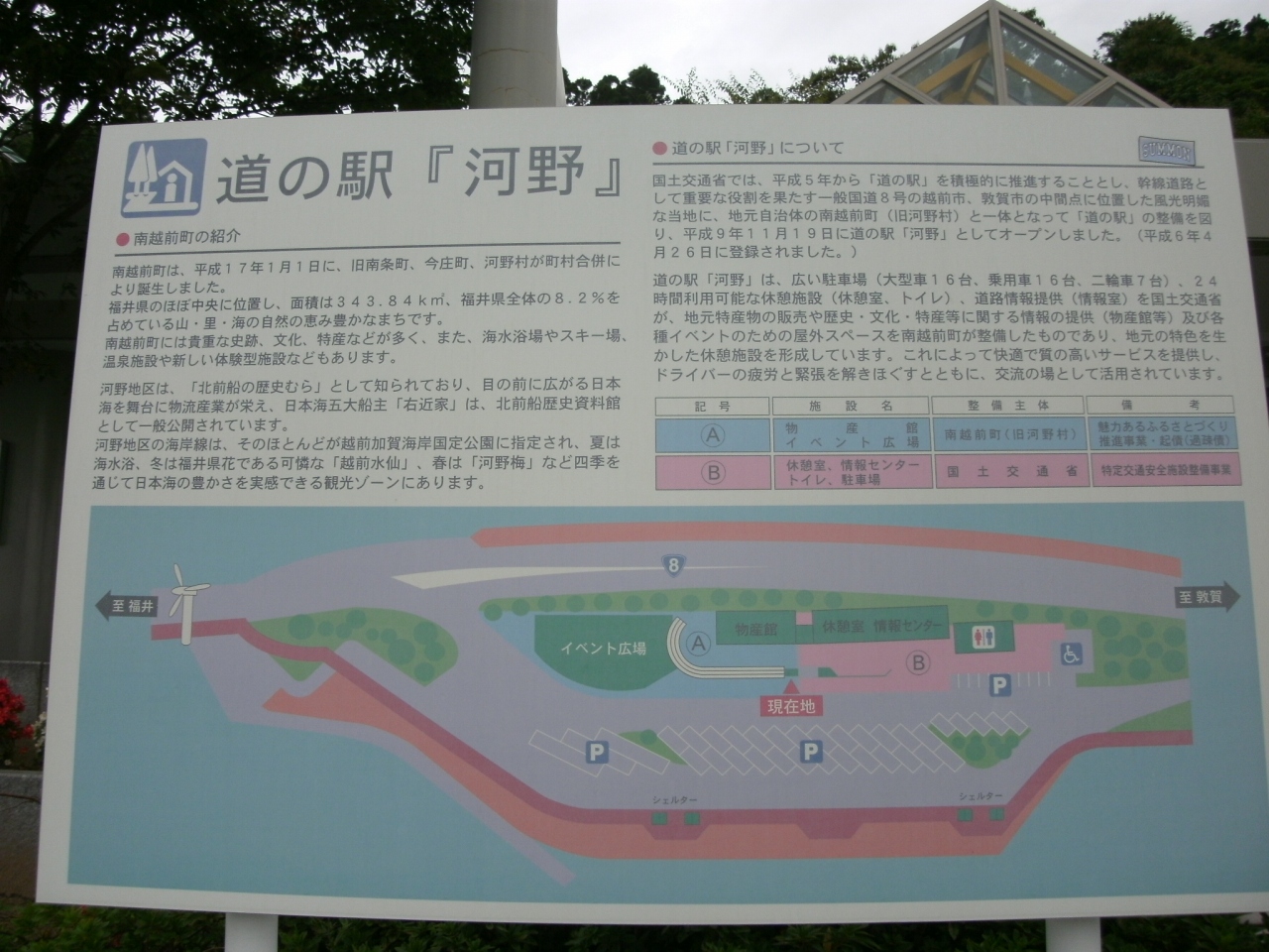 金沢市街から車で走って1時間あまり、国道8号線沿いにある道の駅です。広くて綺麗な道の駅で、情報コーナーにはリクエスト端末やマルチビジョン、プラズマディスプレイ等も配置されていて気象情報や周辺観光情報を得るのに良かったし、ベンチもあったのでゆっくり休息することが出来ました。
