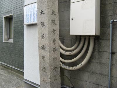 地下鉄の天満橋駅から南に300mほど、大阪府庁別館の北側に 「明治天皇聖蹟・大阪英語学校址」と書かれた石碑とその横に「大阪英語学校跡」という説明板があります。