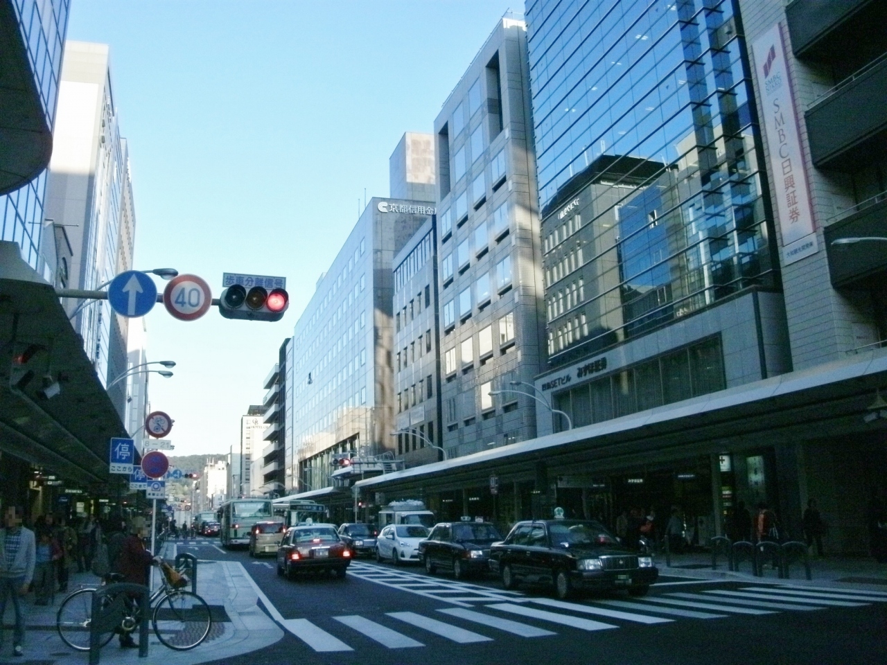 三条通のうち特に烏丸通りから東側には、中京郵便局庁舎、旧日銀京都支店(京都文化博物館)、日本生命京都三条ビル、旧不動産貯蓄銀行ビルなど明治・大正時代に建てられたレトロなビルや古い商家の建物を見ることができます。レトロな建物の間には新しいビルが建っていたりしていて統一された美しさはありませんが、古い建物がカフェやフアッション関係などの施設として生かされているのも京都らしくていいなと思います。