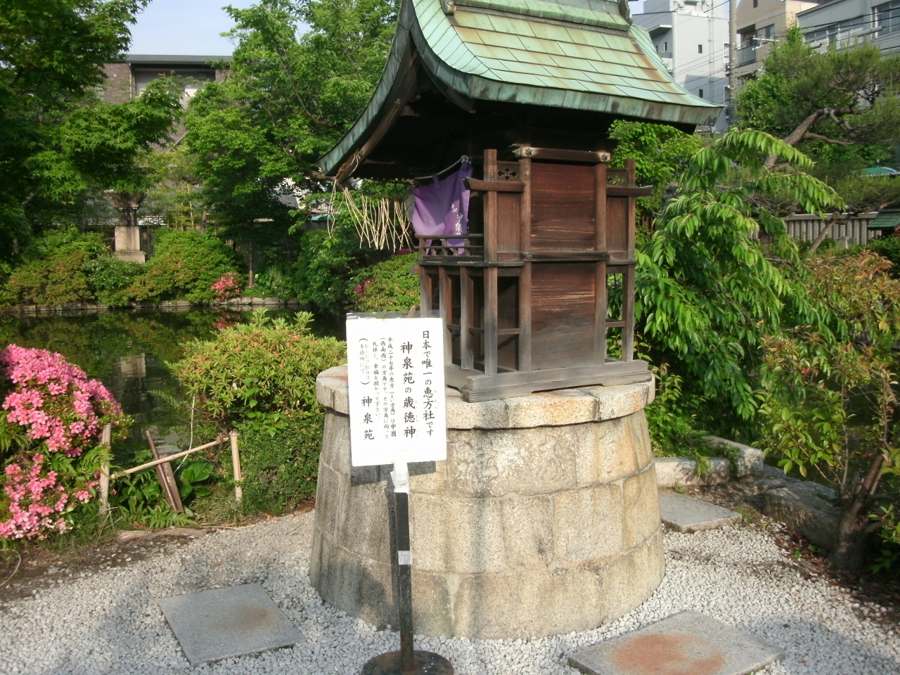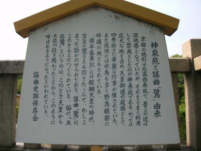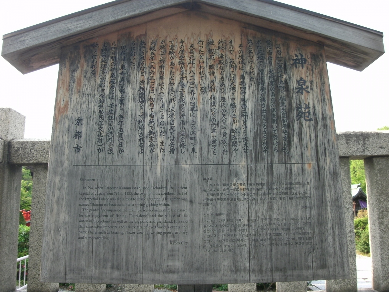 この地は、平安京大内裏造営の際に設けられた天皇の遊覧用庭園(禁苑)があったところで、今もその苑池の一部が残っています。