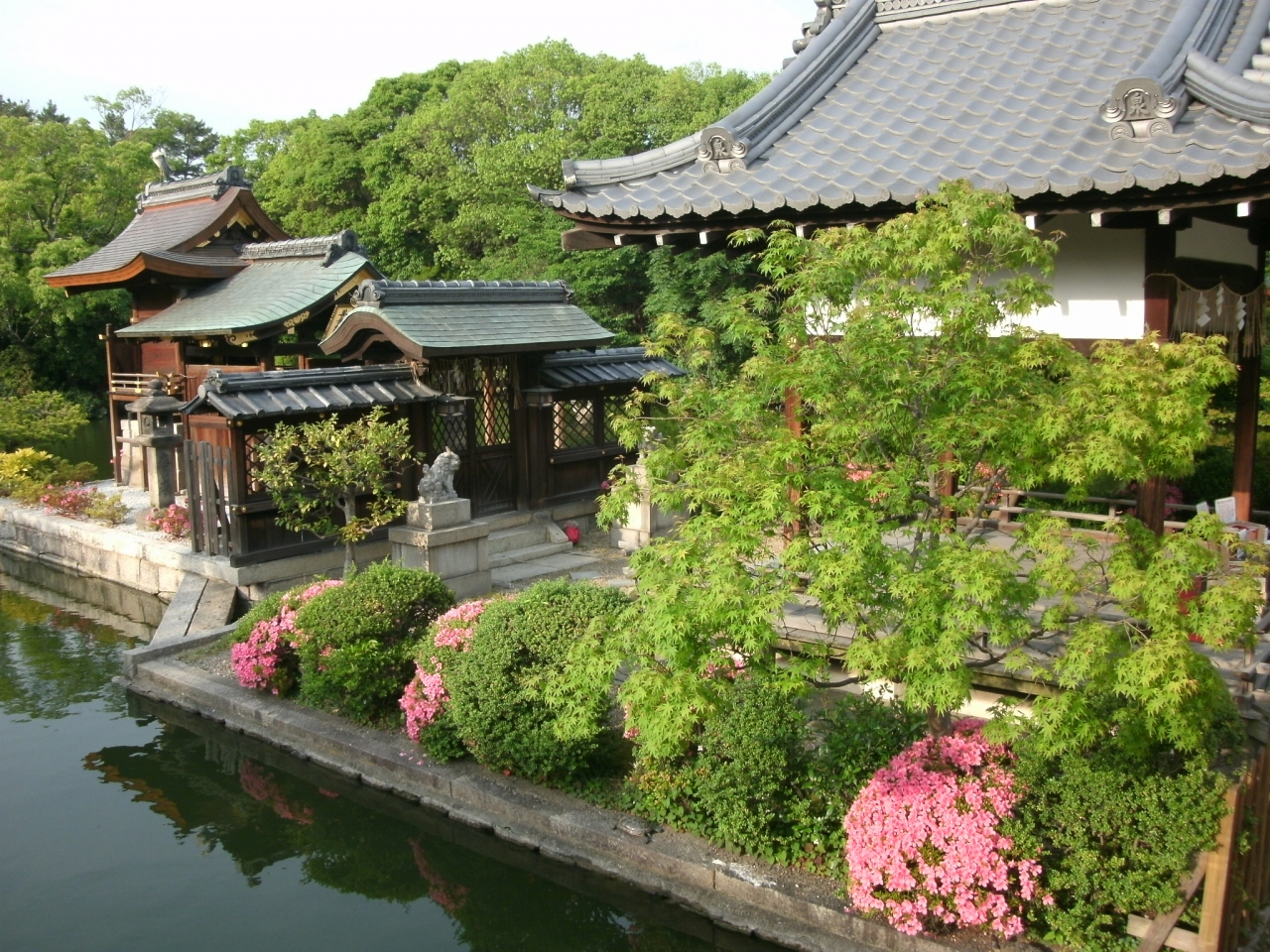 境内は大池を中心に緑豊かな景色が広がり、京都の町中にあるとは思えないほどの静かな庭園で、池の周りに本堂や方丈、恵方堂、弁天堂などがあってとても綺麗です。