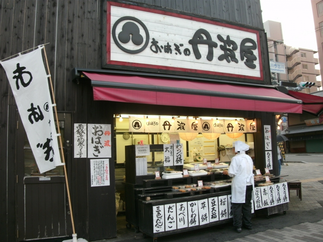 「おはぎの丹波屋」さんは、京都・大阪・兵庫の3府県で30店舗ほど展開されている、関西人にはなじみのある庶民的な和菓子のお店です。ここのお店は地下鉄の今出川駅から直ぐ、堀川今出川交差点の南西角にあります。