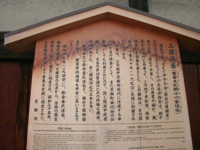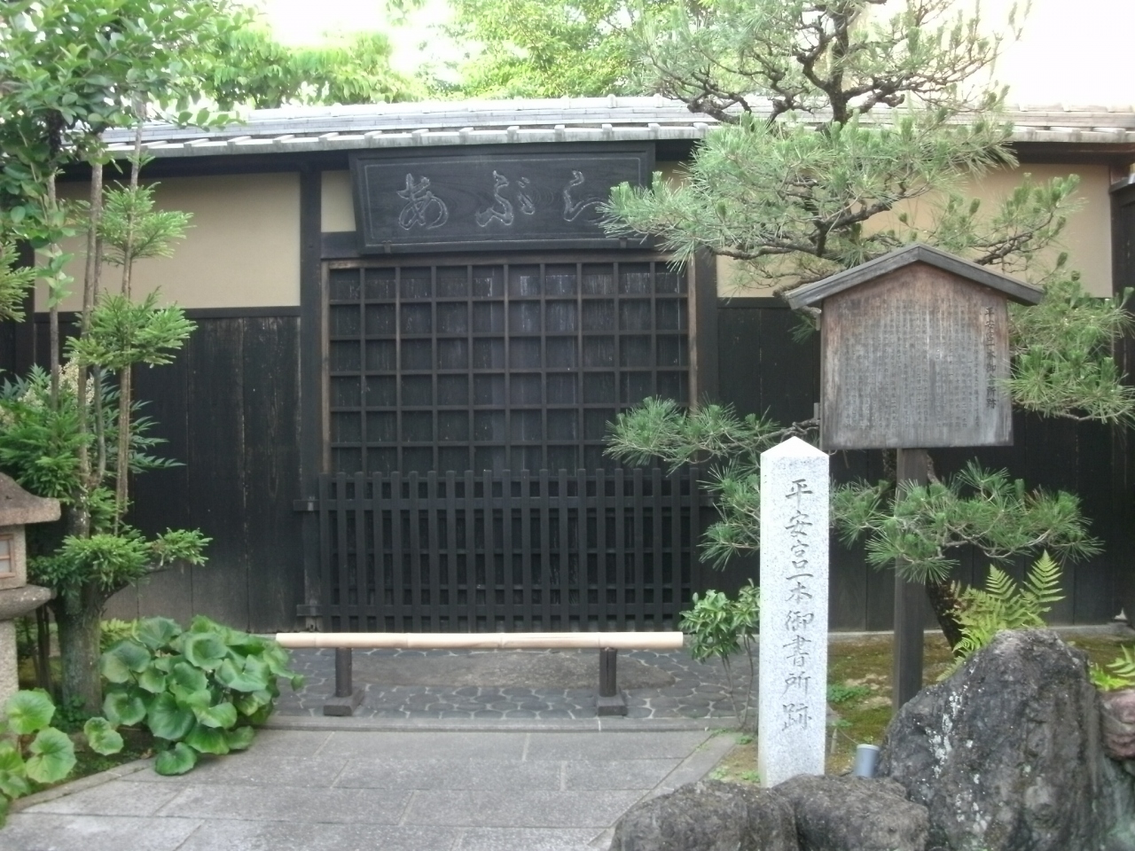 また、平安時代、この附近は天皇の住まいである内裏の東側に当たり、一本御書所があったところで、お店の東側には、“平安宮一本御書所跡”の石碑と駒札(説明板)があって、1159年の平治の乱で後白河上皇が幽閉された場所などの説明があります。- 旅行時期