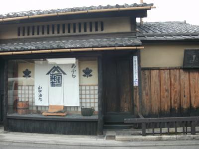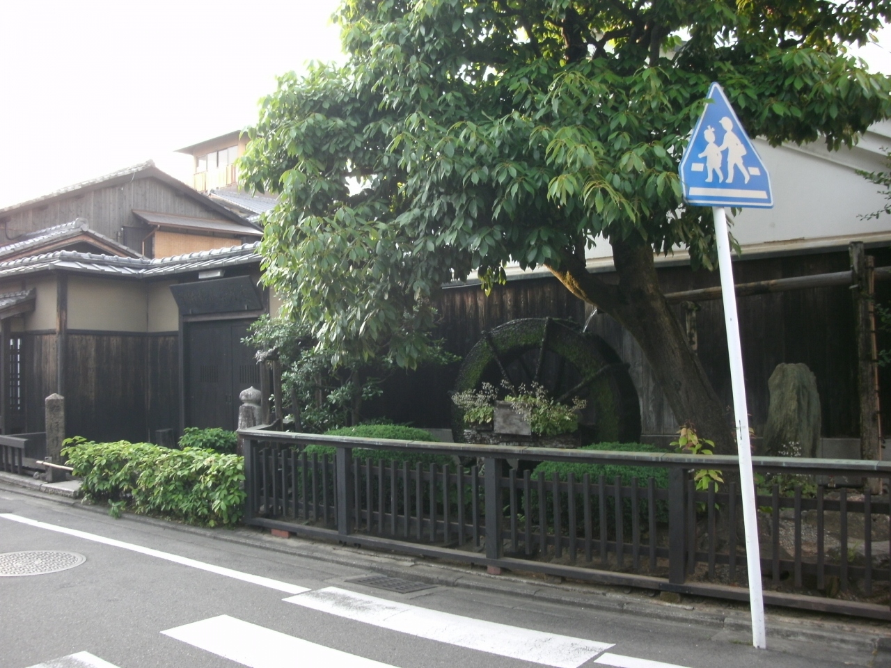 安政二年(1855年)に建てられたというお店は、紅殻格子に間口の広い重厚な建物で大変見ごたえがあります。また、建物の端には水車が回る小さな池と庭があって風情があります。