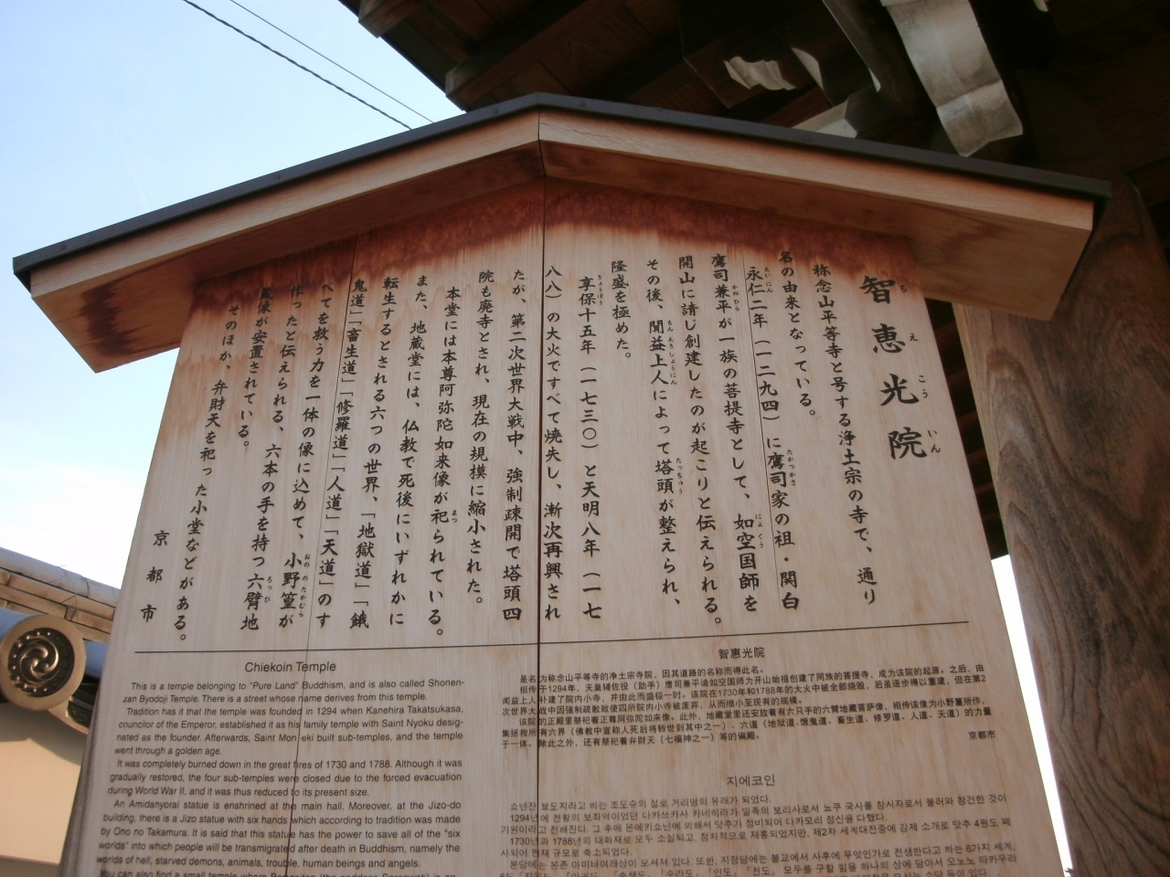 地下鉄の今出川駅から歩いて10分あまりのところにあります。京都市内を南北に走る通り(智恵光院通)名のもとになっているお寺さんとして知られています。
