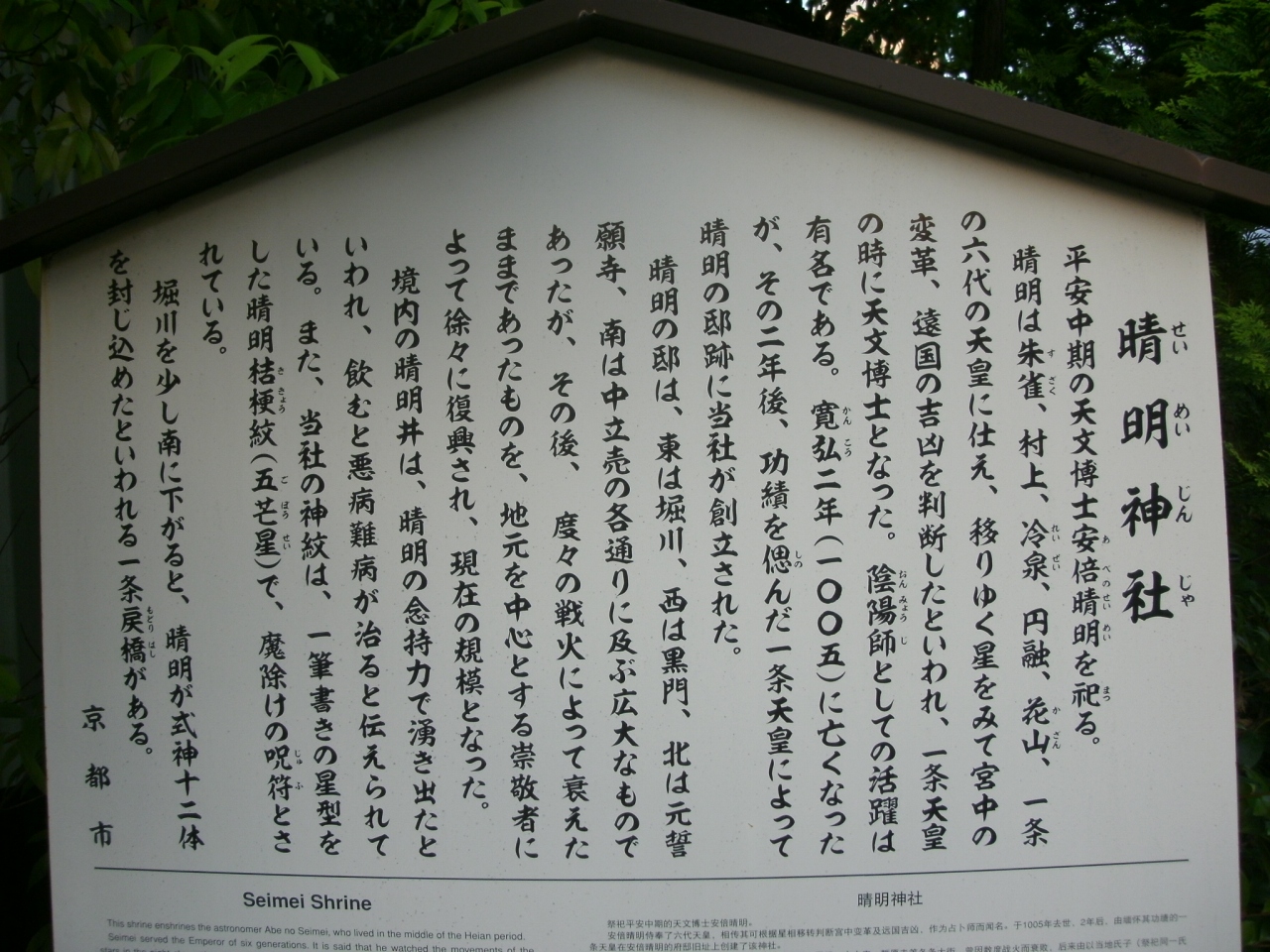 アニメや映画、テレビドラマなどでよく知られるようになった、平安時代中期の天文学者である陰陽師・安倍晴明公をお祀りする神社です。