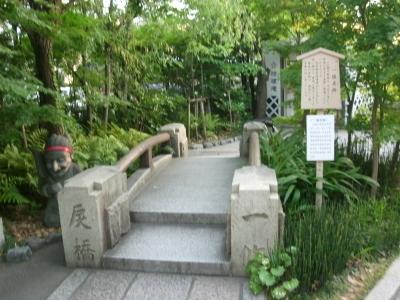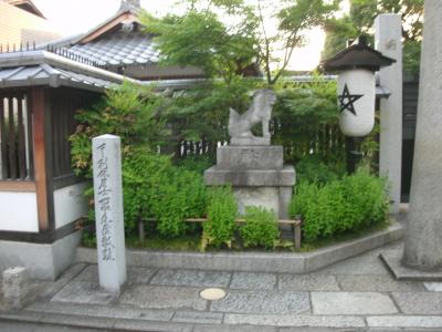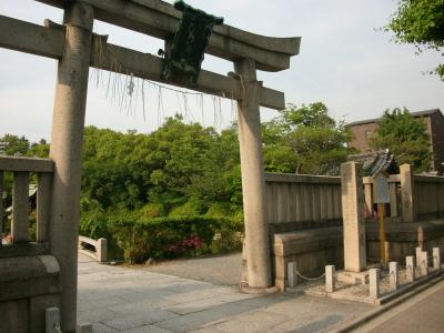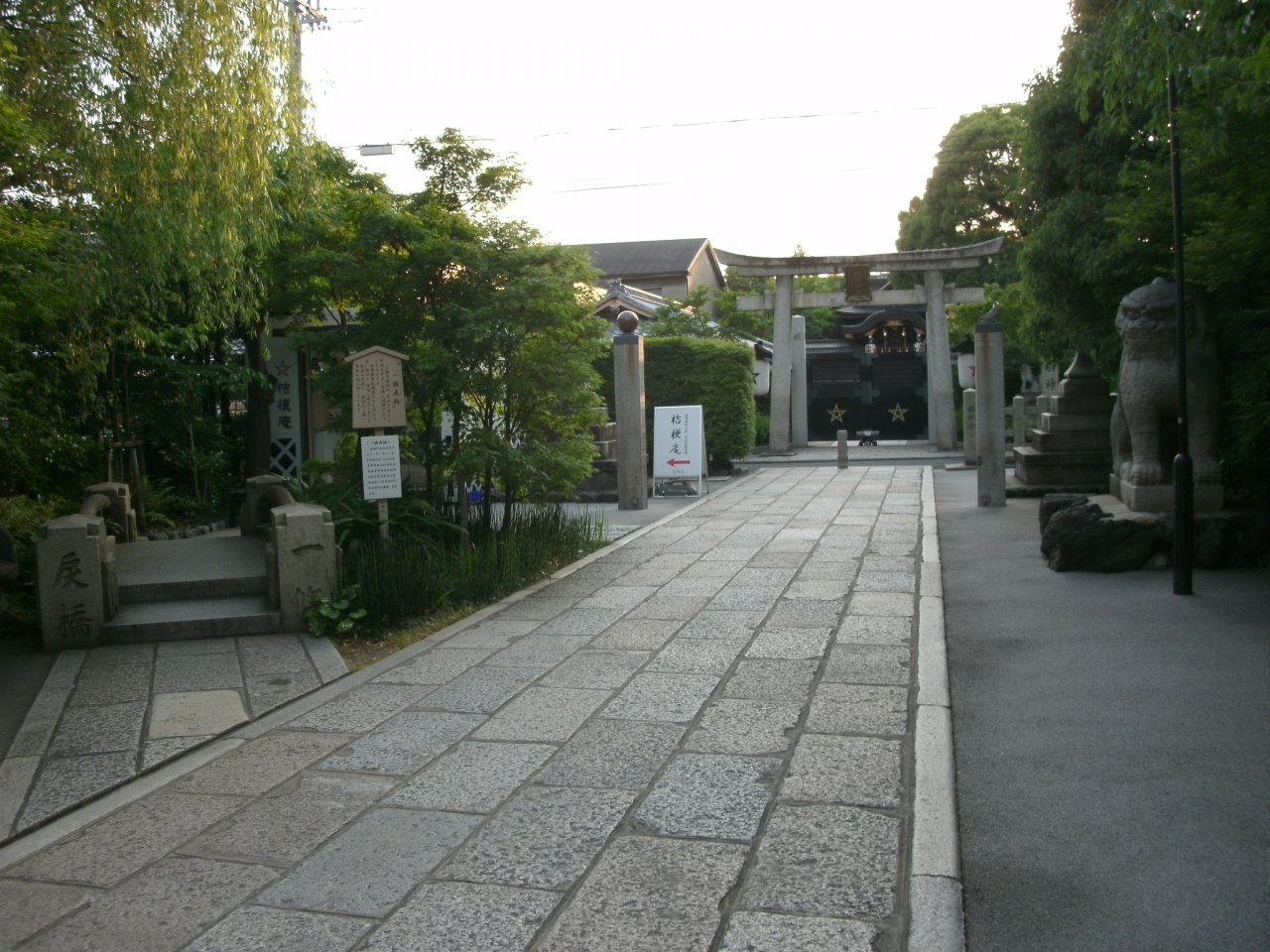 晴明公の屋敷跡に建つ神社で、「五芒星」が掲げられた一の鳥居や古い一條戻橋の欄干、