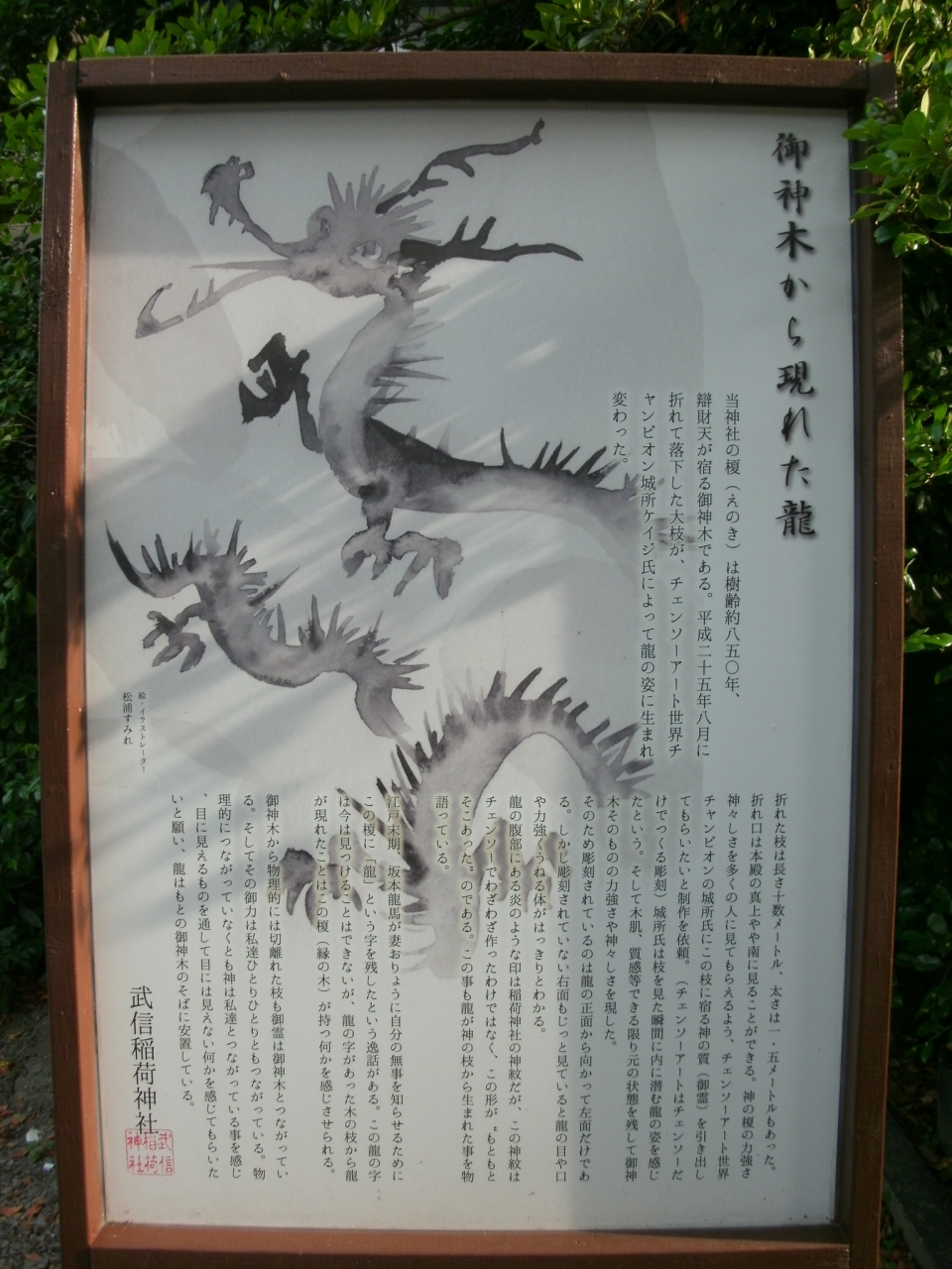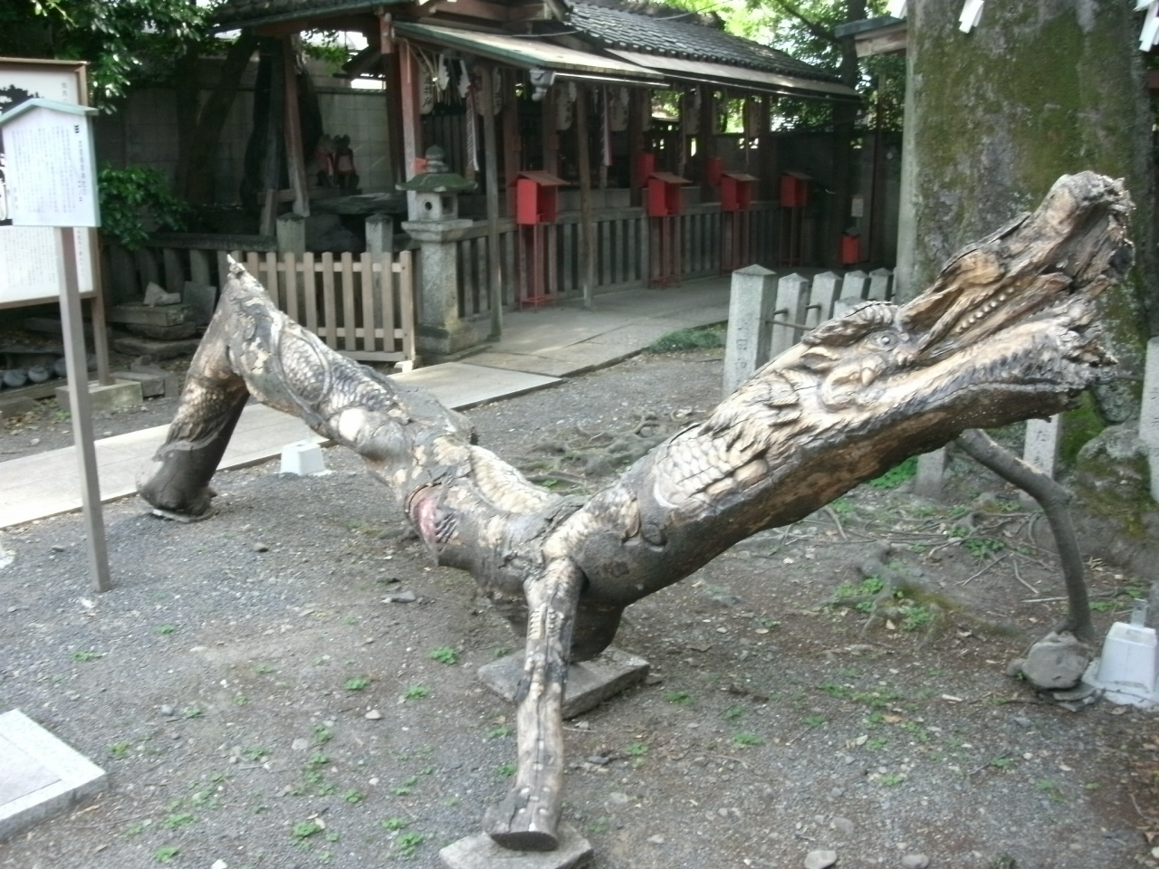 また、御神木の榎の折れた大枝で造られたチェンソーアートの“龍”の置物も境内にあります。