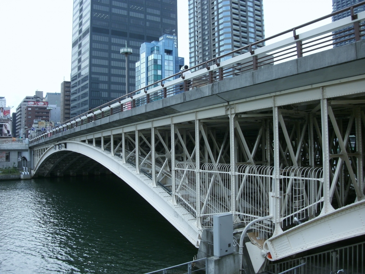 鉄筋コンクリートアーチ形の橋は、中之島に架かる橋の中でも屈指の美しさです。橋の上を阪神高速道路が通っているのが気になりますが、それもあわせて、水都大阪を代表する景観だと思います。- 旅行時期