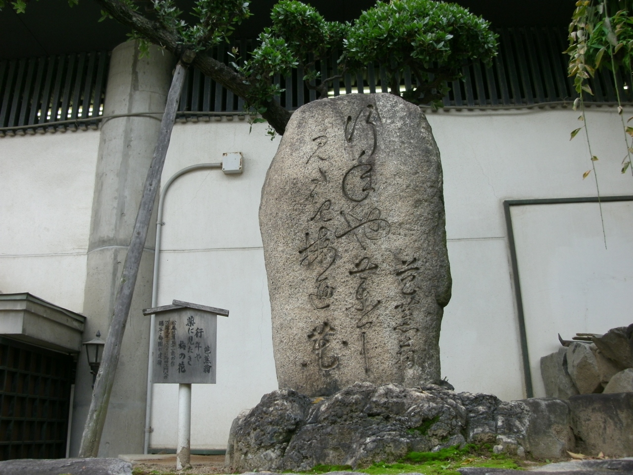 “行年や 薬に見たき 梅の花”と彫られた大きな句碑です。1694年、芭蕉最晩年の句とされ、『梅の花が薬になれば・・・』と言う意味があるのでしょう、芭蕉は1964年に大阪でなくなっていますので、体調の悪さを物語る句です。- 旅行時期