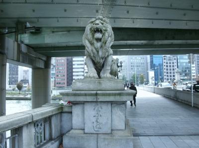 橋の南詰めおよび北詰めには、ライオンの石像が左右両側にあるため、“ライオン橋”とも呼ばれています。