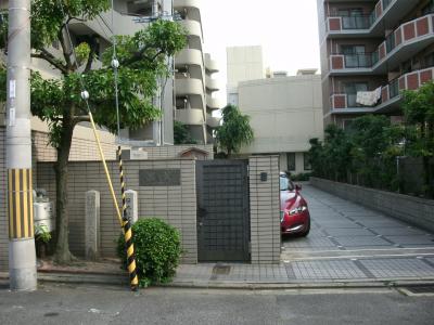 「六角獄舎跡」は、阪急電車の大宮駅から北へ歩いて10分足らず、武信稲荷神社の南側の財団法人盟親(更生保護施設)の正門付近にその石碑があります。一見、マンションの入り口の様で、わかりにくいですが、施設入り口の外側の左手に「勤王志士平野國臣外十数名終焉之地」と、「日本近代医学発祥之地」の小さな石碑が立ち、正門を入って直ぐ左手に「殉難勤王志士忠霊塔」と「山脇東洋観臓之地」の大きな石碑が二つ並んでいるので、よく見たら判ると思います。