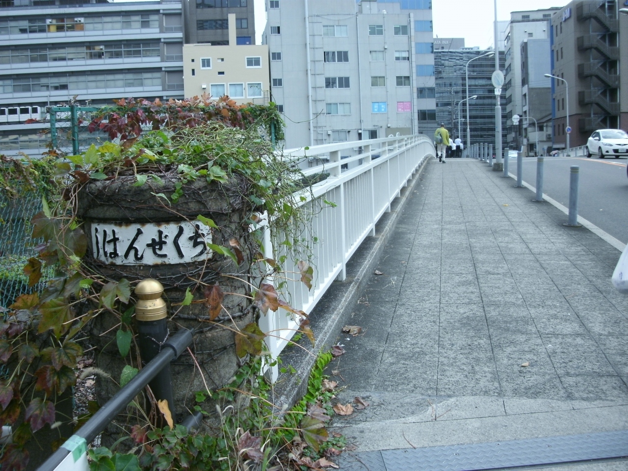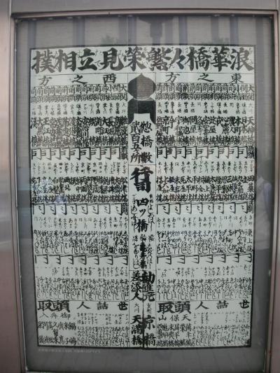アーチ形の優雅な橋で、橋の上には江戸末期から明治初期に画かれた大阪の橋をテーマにした錦絵をタイルに焼きつけたものが展示されています。