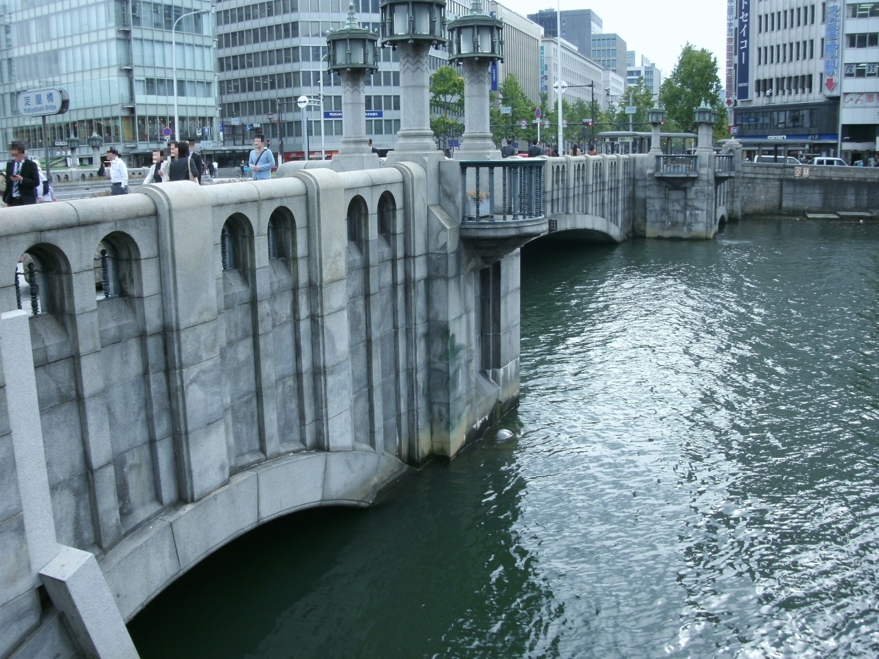 大阪市営地下鉄四つ橋線の肥後橋駅から歩いて5分ほど、土佐堀川(旧淀川)に架かる橋です。