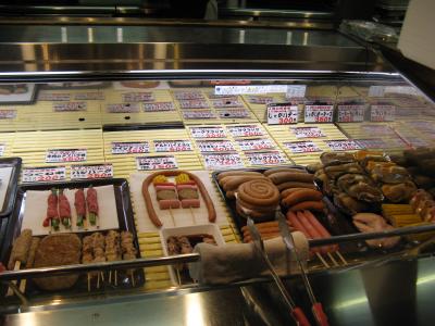 店頭には、料理のサンブルが沢山並べてあって料理の内容と値段がわかりやすく、店頭の屋台では豚まんや飲茶、中国の御菓子などが南京町土産として販売されています。