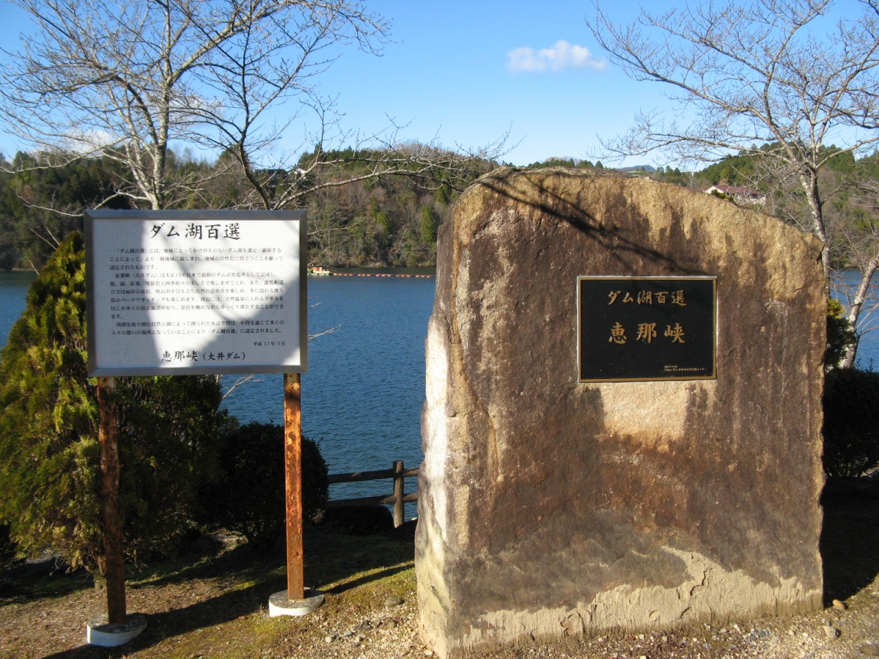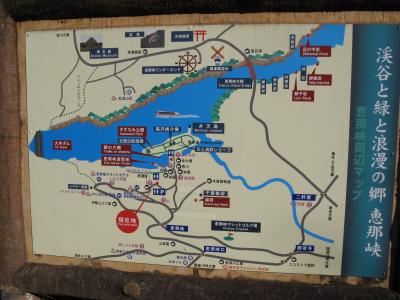 ちょっと場所が判りにくいですが、恵那峡にあった観光案内板(恵那峡周辺マップ)に、その名前が載っていて、位置関係が判りますので、参考までに観光案内板の写真を添付します。