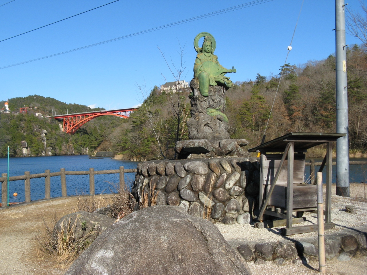 また、半島の中には、“ドングリ広場”という広場があって、そこには恵那峡が造られることになった“大井ダム”を造った福澤諭吉の娘婿で「電力王」の異名をとった実業家の“福澤桃介”の銅像と、日本の近代女優第一号とされている“川上貞奴”のレリーフがあります。