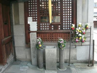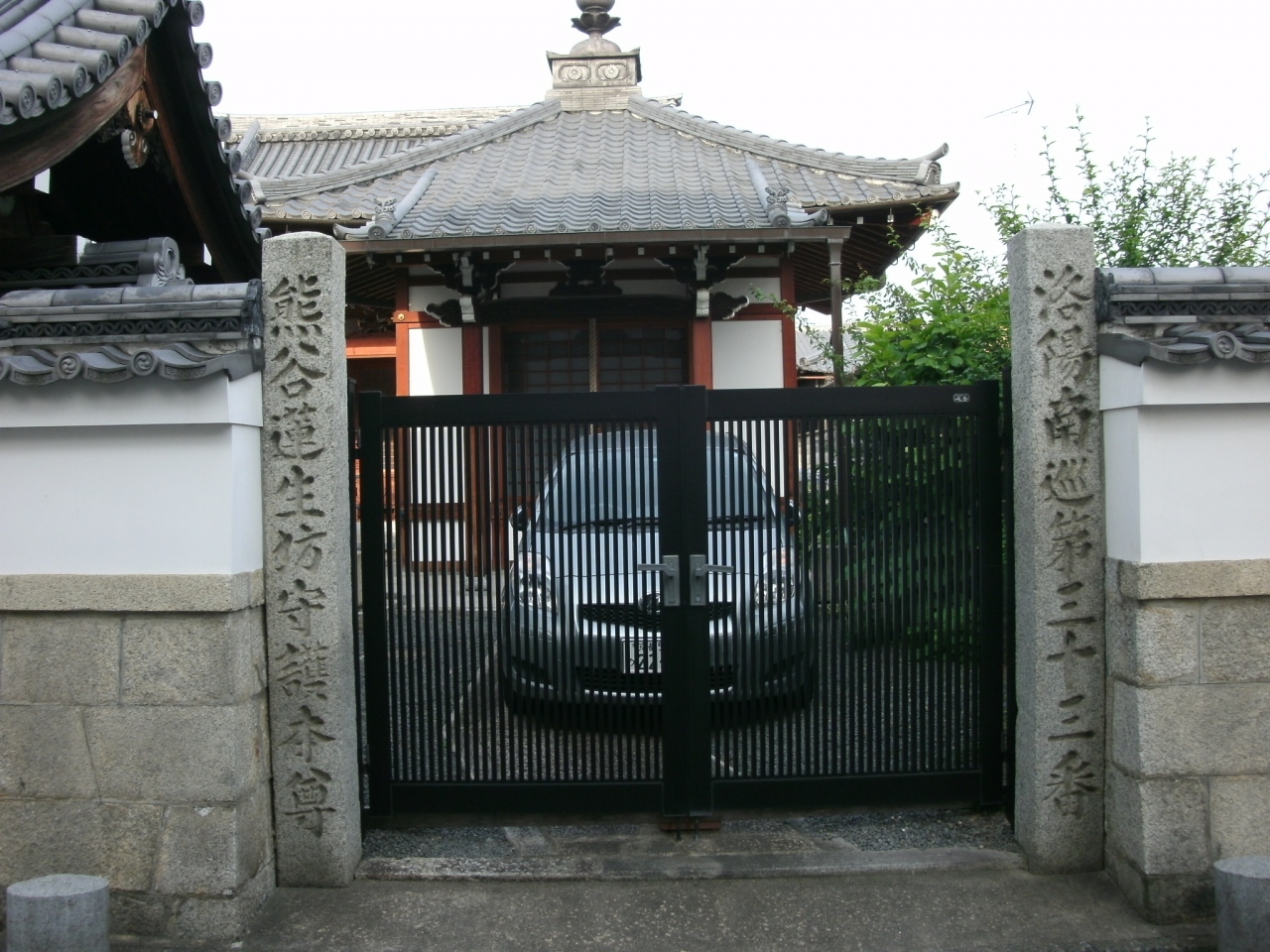お寺の山門横には、『熊谷蓮生坊守護本尊』と彫られた大きな石碑があります。熊谷蓮生(熊谷直実の法名)は鎌倉時代の武将で後に出家し、一時期、京都で暮らし、その念持仏の十一面観音像が観音堂にお祀りされています。